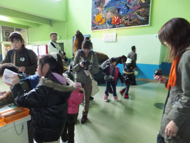 あざらしの撮影に夢中のかざねちゃん8歳。