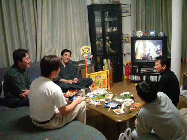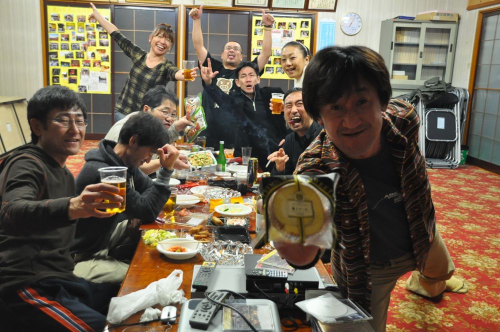 自分たちのライブビデオ上映会をしながら…の、