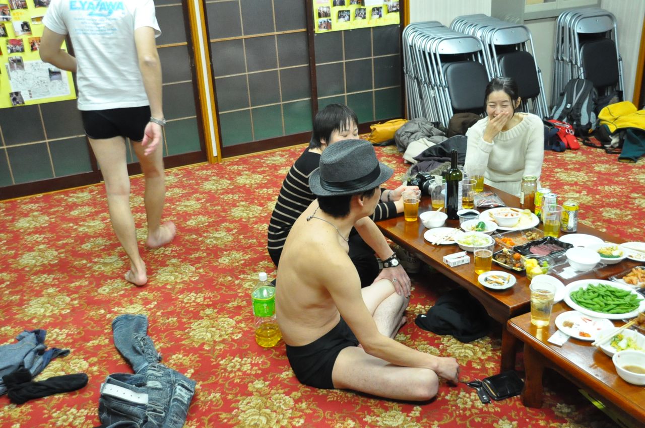 裸で飲むって…